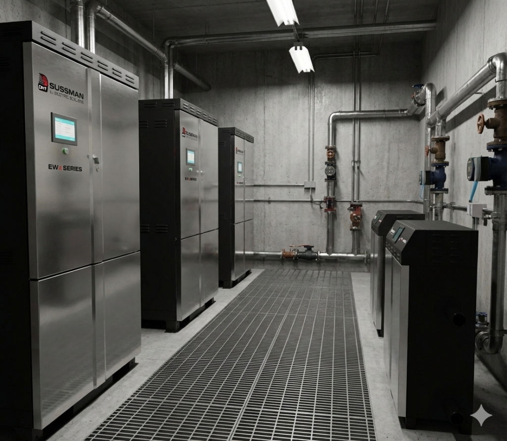Electric boilers are no longer viewed as a future concept. In many applications, they are a viable, spec-ready solution today. Sussman Electric Boilers provide high-efficiency hot water heating without onsite combustion, making them well suited for facilities pursuing electrification, emissions reduction, and improved indoor environmental quality¹.